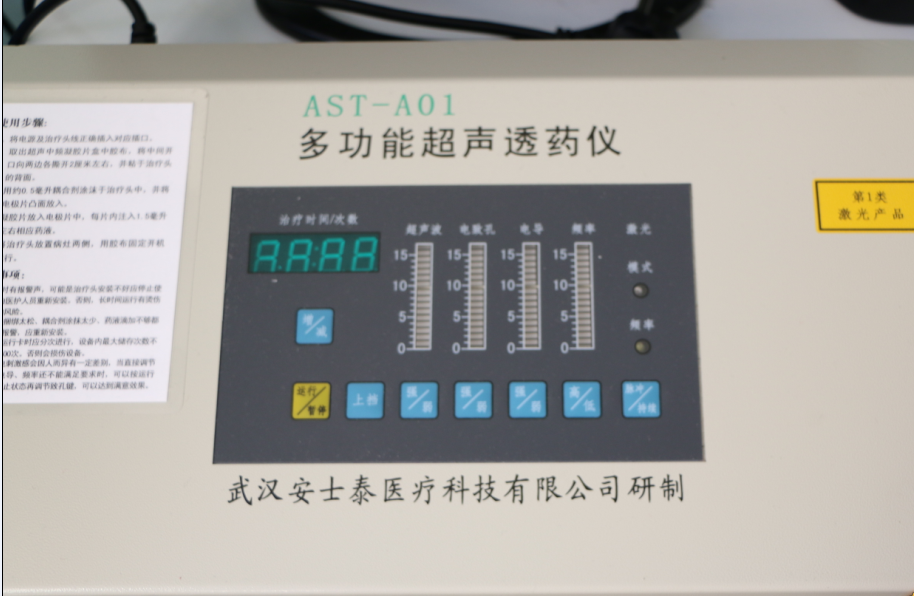 4、多功能超声透药仪,是超声、致孔、电导、激光有机结合形成的具有增加药品皮肤吸收功能的设备,适用于局部病灶的药物治疗病例。适用于骨伤科、康复理疗科、内科、儿科、男科、妇科、肿瘤科、疼痛科等。