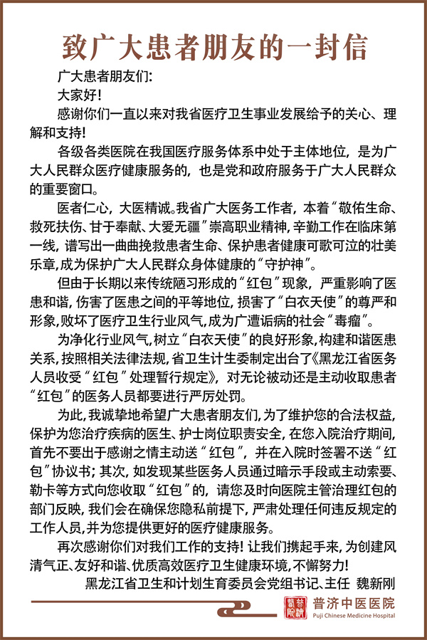 举报信箱(邮寄地址):大庆普济中医医院医政科(大庆市让胡路区中央大街83号,区公安分局斜对面)